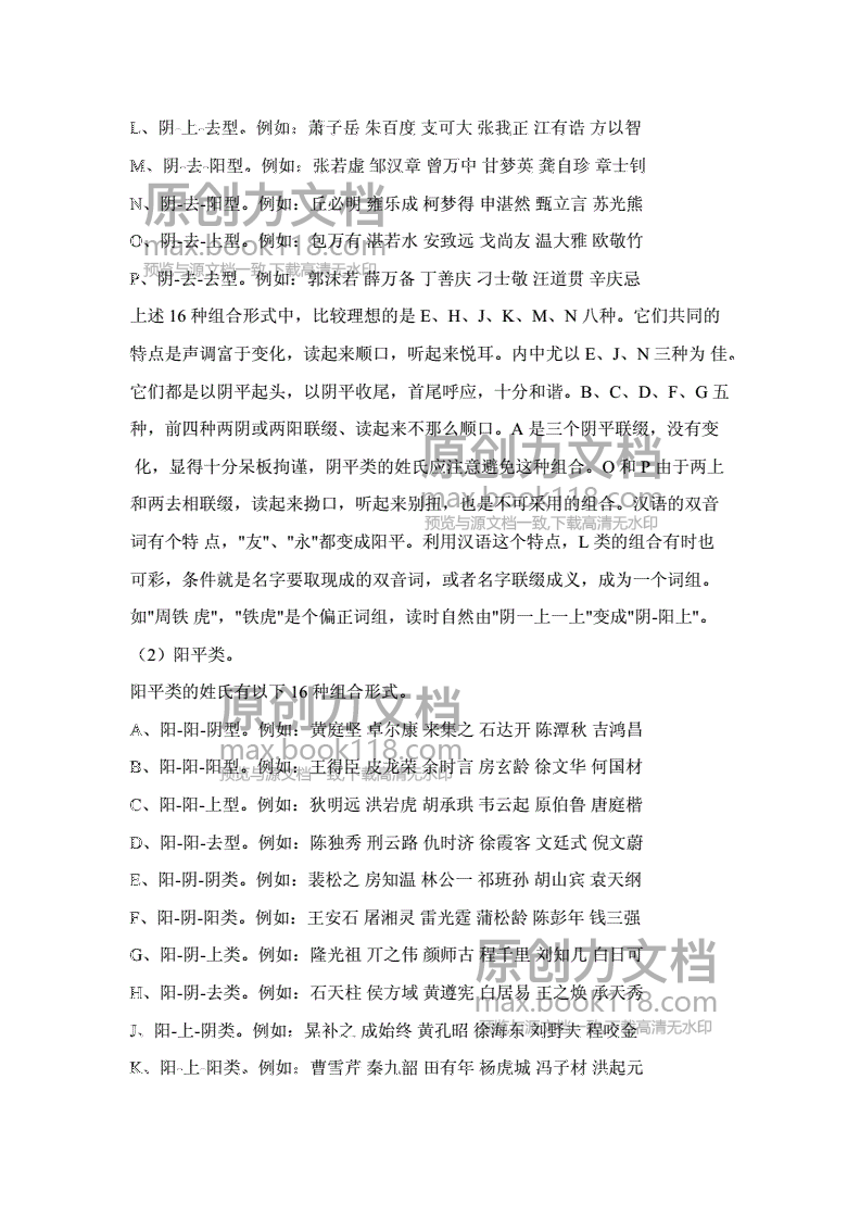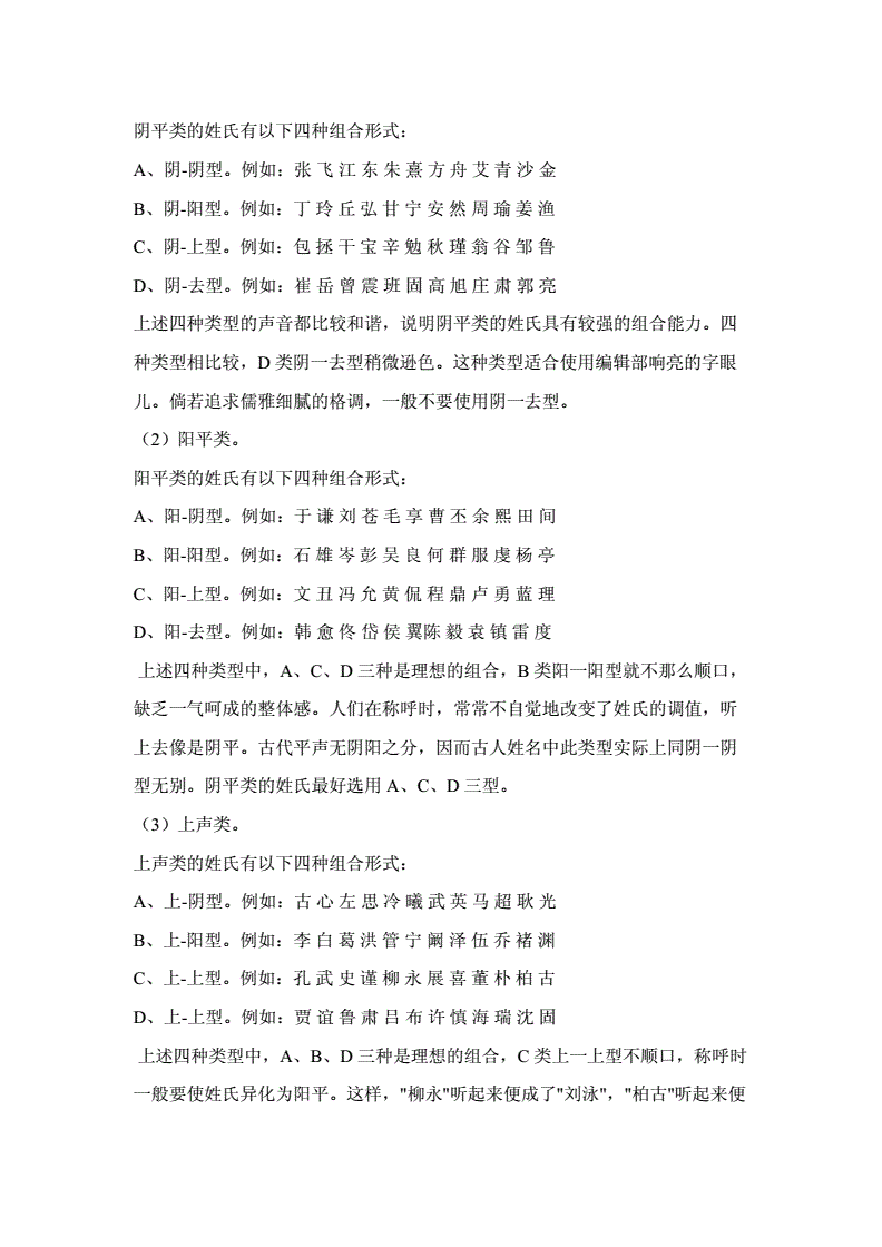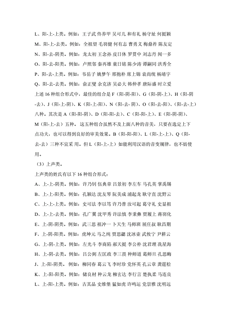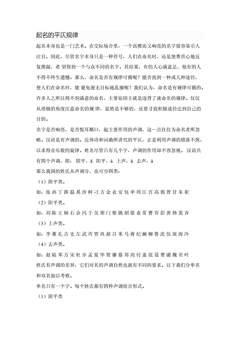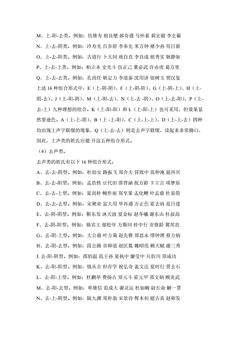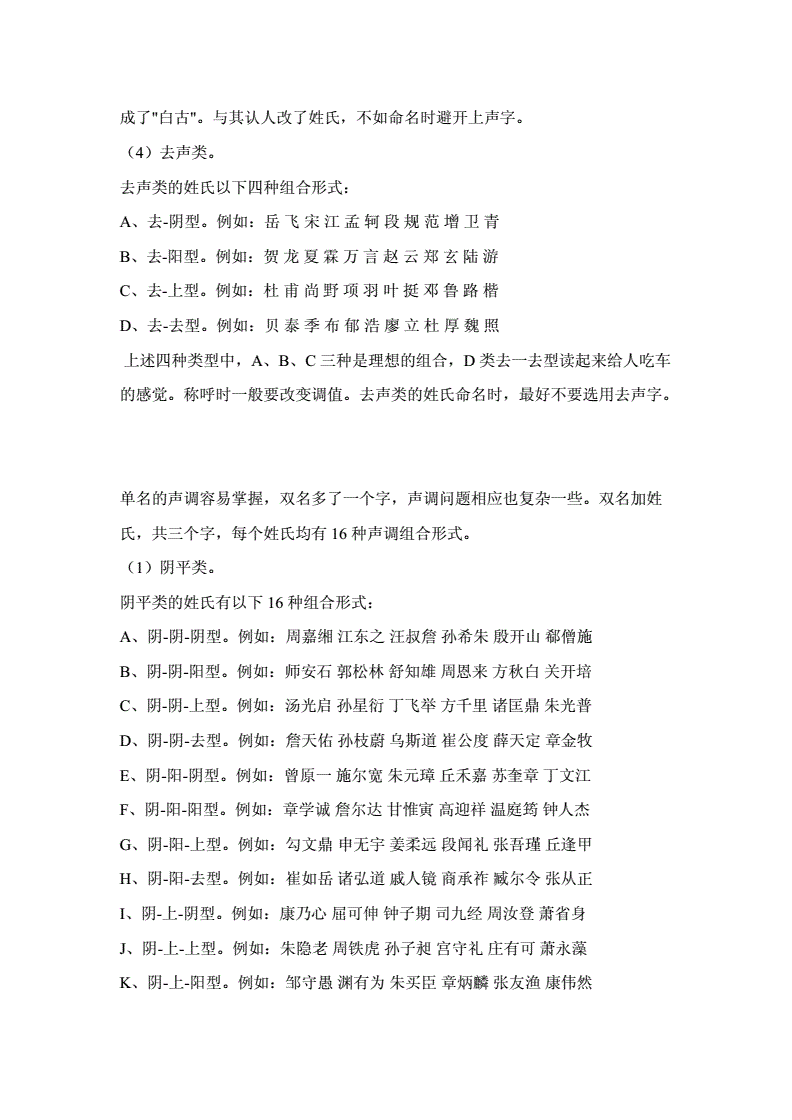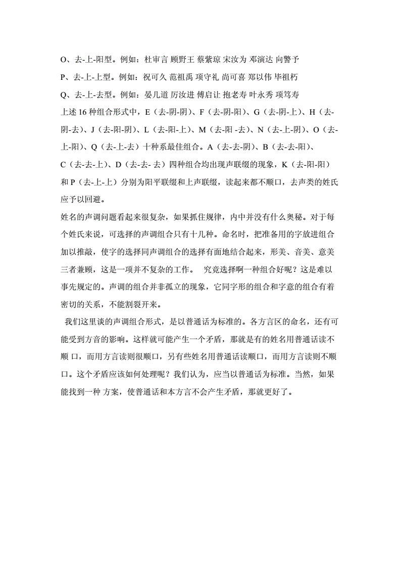 姓氏有声调的差异,它们对名的声调自然也就有不同的要求。以下我们分单名和双名加以考察。?